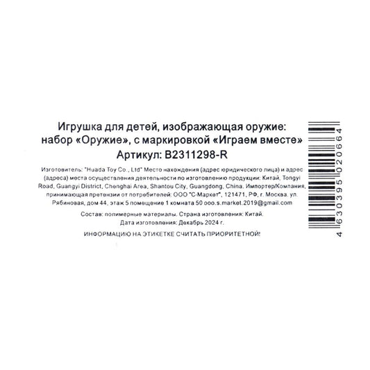 Автомат-трещотка блистер 48*15,5*3см ИГРАЕМ ВМЕСТЕ в кор.2*72шт