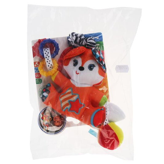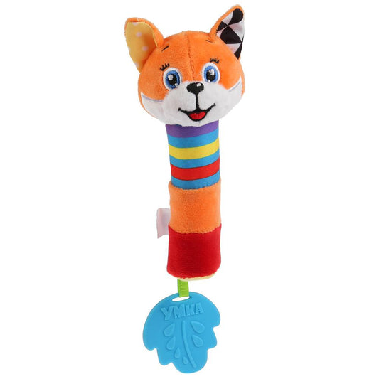 Текстильная игрушка погремушка-пищалка лиса на карт. в пак. (русс. уп.) "Умка" в кор.240шт