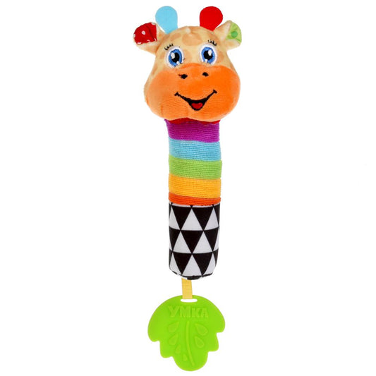 Текстильная игрушка пищалка с погремушкой жираф на карт. в пак. (русс. уп.) "Умка" в кор.240шт
