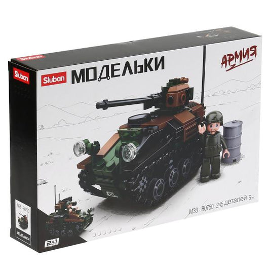 Конструктор пласт. танк с фигуркой, 245дет. в русс. кор. в кор.36шт