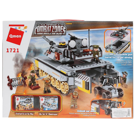 Конструктор пласт. военный танк с фигурками и аксесс., 482дет. в кор. в кор.16шт (Собран)