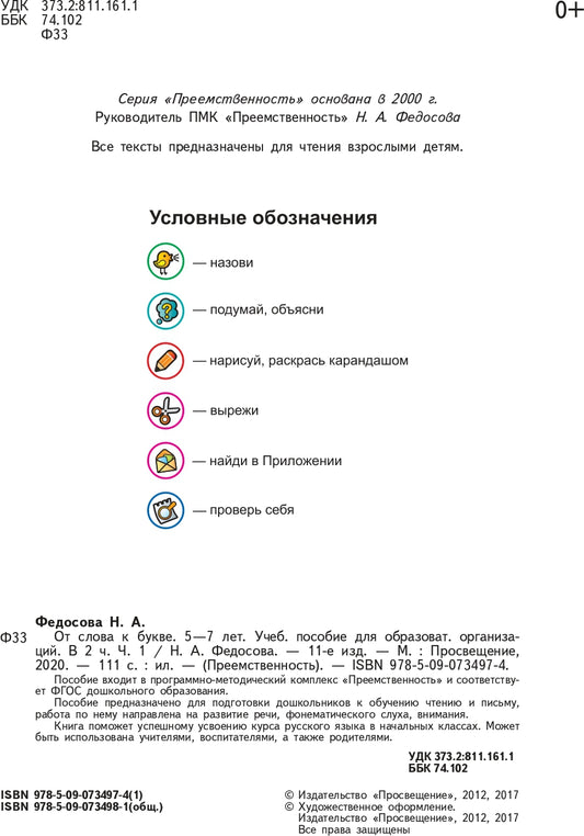 Федосова (ФП 2019) От слова к букве. Учебное пособие для детей 5-7 лет. В 2 частях. Ч.1 (УМК "Преемственность")