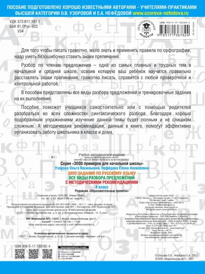 3000 заданий по русскому языку. Все виды разбора предложений. С методическими рекомендациями. 4 класс