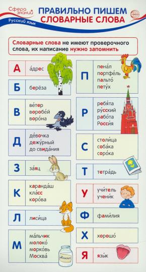 ШМ-14905 Карточка-шпаргалка. Словарные слова (110х205 мм)