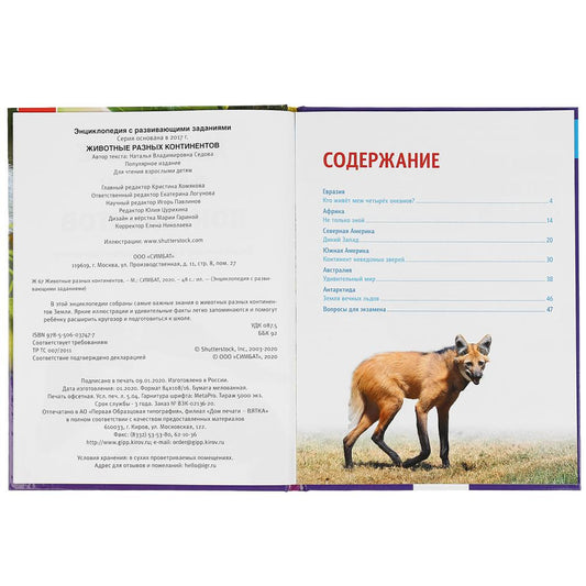 "УМКА". ЖИВОТНЫЕ РАЗНЫХ КОНТИНЕНТОВ (ЭНЦИКЛОПЕДИЯ А4).ТВЕРДЫЙ ПЕРЕПЛЕТ. БУМАГА МЕЛОВАННАЯ в кор.15шт