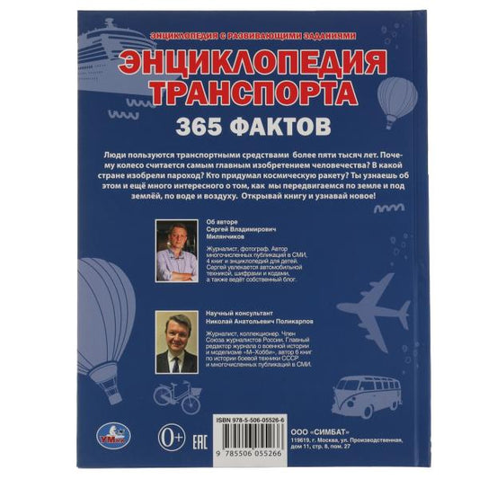 Энциклопедия видов транспорта. 365 Фактов. Энциклопедия А4. 197х255мм, 64 стр. Умка в кор.14шт
