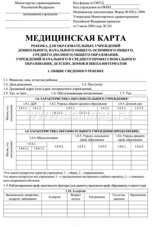 Медицинская карта ребёнка. (Формат А4, обложка мелов картон, блок офсет пл. 65, скрепка) 32 стр.