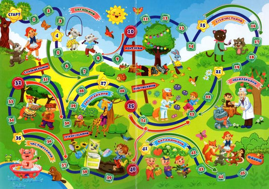 Настольная игра-бродилка. Сказочные тропинки здоровья. (игровое поле, 4 фишки, 1 кубик)
