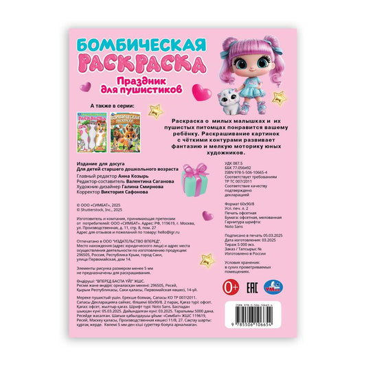 Праздник для пушистиков. Раскраска Бомбическая. 214х290 мм. Скрепка. 16 стр. Умка в кор.50шт