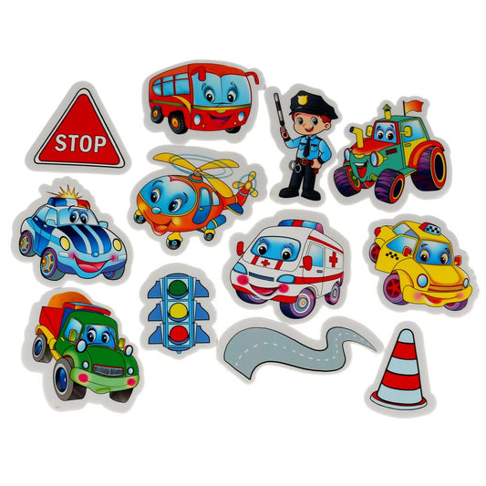 Игрушка пластизоль для ванны набор стикеров ева машинки 12 шт, сумочка сетка КАПИТОШКА в кор.50шт