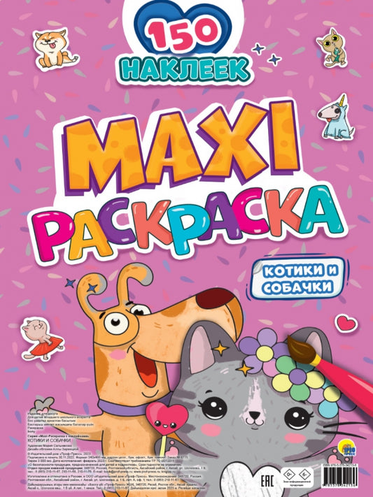 МАКСИ-РАСКРАСКА с наклейками. КОТИКИ И СОБАЧКИ