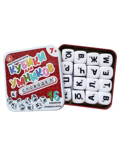 Игра настольная в жестяной коробочке "Кубики для умников" Словодел (жестяная коробочка)
