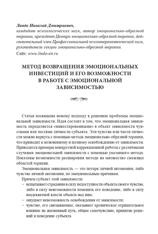 Thérapie émotionnelle. Nouveau statut d'étape : сборник статей