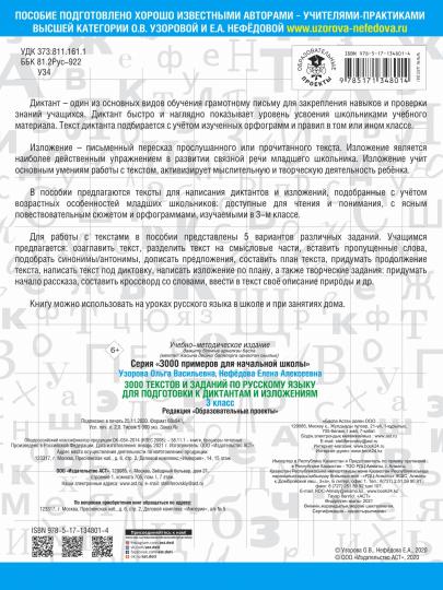 3000 textes et exemples de textes russes pour les dictants et les instructions. 3ème classe