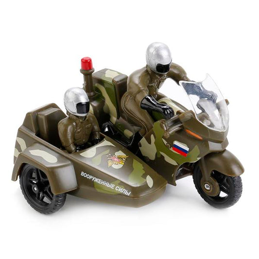 МОТОЦИКЛ "ТЕХНОПАРК" МЕТАЛЛ. 10СМ, С КОЛЯСКОЙ С ФИГУРКАМИ ПОЛИЦИЯ/ВС В АССОРТ. КОР. dans le cor.2*48шт
