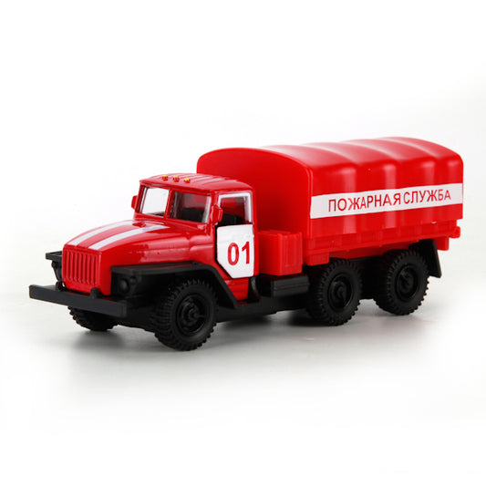 МАШИНА "ТЕХНОПАРК" МЕТАЛЛ. ИНЕРЦ. УРАЛ ПОЖАРНАЯ СЛУЖБА 12СМ, ОТКРЫВ. ДВЕРИ В РУСС. КОР. dans le cor.2*24шт