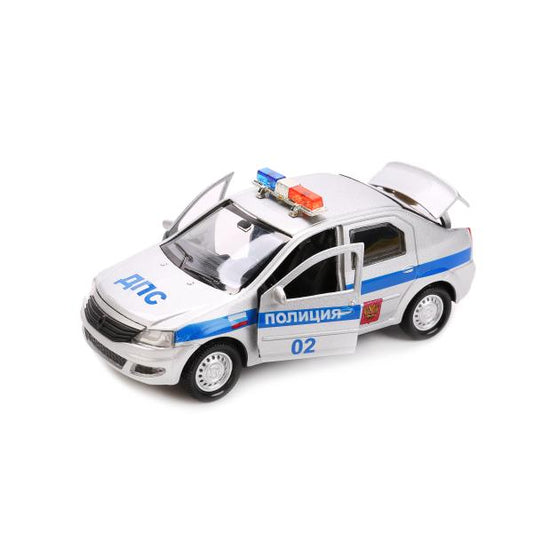 Machine en métal RENAULT LOGAN ПОЛИЦИЯ, 12 cm, double, sac, in.sérébriste, cor. Parc technologique dans le cor.2*36шт