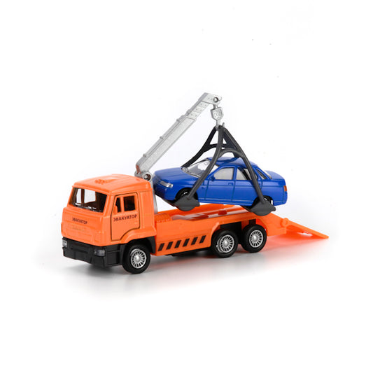 Machine en métal KAMAZ ЭВАКУАТОР, 12 см,дв.,подв.дет.,инер.+machine 7,5 см, кор. Parc technologique en cor.2*24шт