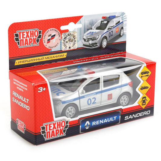Machine en métal RENAULT sandero ПОЛИЦИЯ, 12 см, double, bagag., инерц., kor. Parc technologique en cor.2*24шт