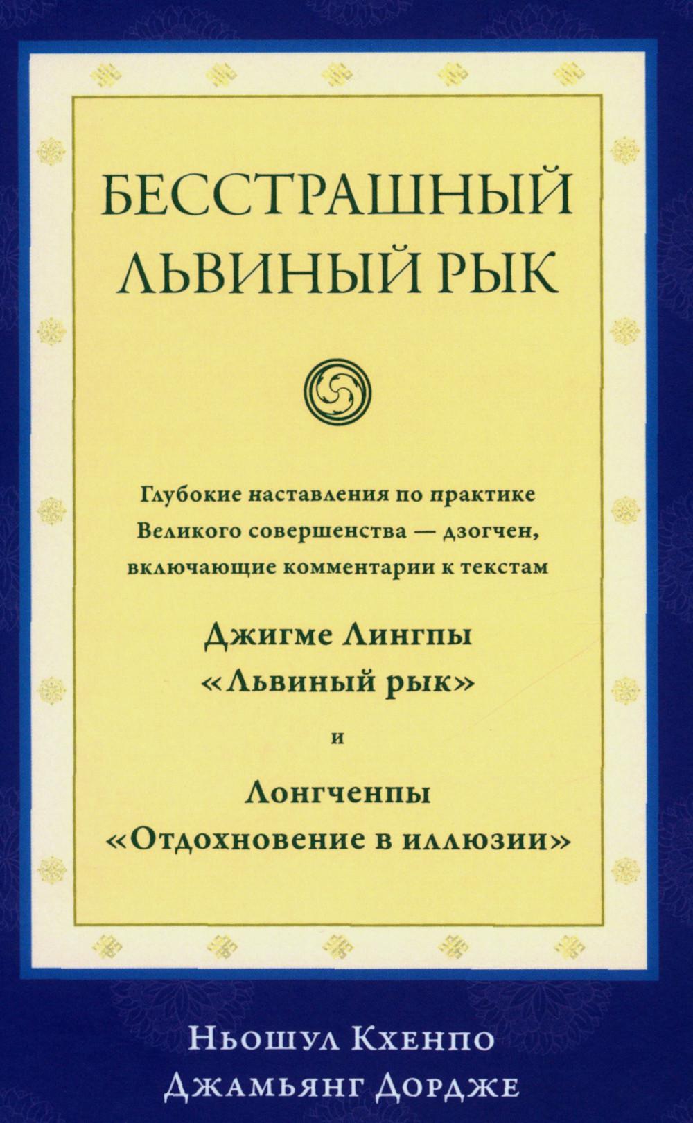 «Бесстрашный львиный рык» Ньошула Кхенпо Джамьянга Дордже — глубокие наставления по практике Великого совершенства дзогчен, Il y a également des commentaires sur le texte de Dzhígme Lingpы «Львиный рык» et Лонгченпы «Отдохновение в иллюзии» (serie «Самадхи»).В книге представлена Dans tout le système traditionnel, il y a des choses à faire et à faire en même temps, ou le grand souverain, et je pense que c'est comme ça qu'ils sont. Il est possible de réaliser une pratique courante auprès des amis. Les histoires de grands maîtres de Longtemps et de Dirigme Ling sont vraiment prêtes à l'emploi — il n'y a pas d'histoires à faire pour eux ensuite практик.«Ньошул Кхенпо Джамьянг Дордже был одним из наиболее выдающихся йогинов Великого совершенства — дзогпа ченпо — и auteur Dans tous les aspects de votre histoire et de vos pratiques. Dans le cadre de l'étude des grandes lignes de maîtres, nous avons tous les deux longs cheveux du Rabbin et des langues, et Il s'agit d'une démonstration de votre travail, d'une réalisation globale et d'une maintenance personnalisée. Ce livre est une véritable nouveauté et un excellent service pour chacun d'entre nous, qui doit s'occuper de ce sujet». — Согьял Ринпоче«Установи в состояние великого естественного покоя свой беспомощный ум, что подвергается ударам кармы, мыслей и J'ai l'impression que, dans cet océan, nous ne cherchons pas à acheter des gens». — Ньошул Кхен Ринпоче
