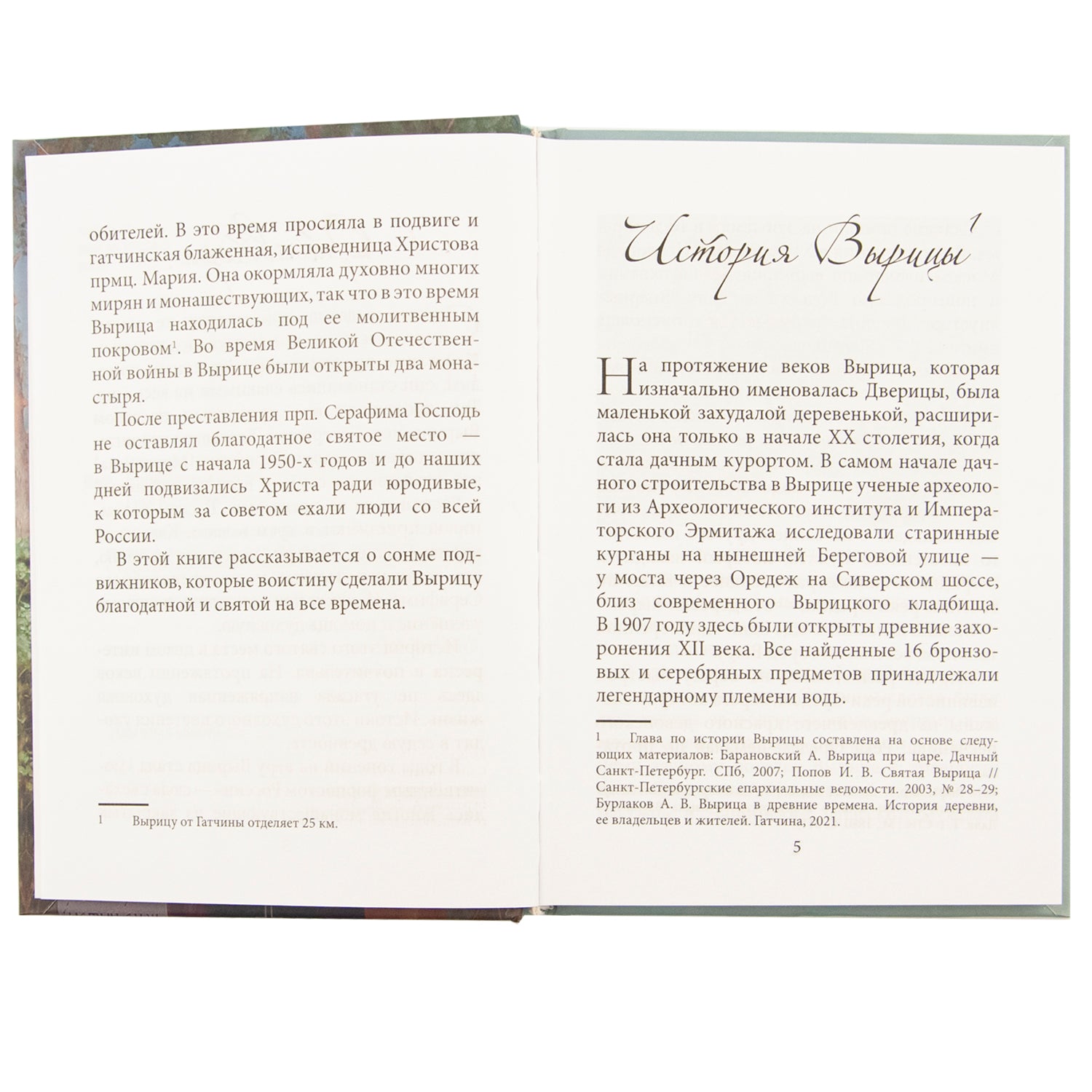 Pour obtenir des informations sur la situation dans tout le pays de la Russie, prévenez la star de Serafime Vyrishkom, qui s'intéressera à l'histoire de Vырицы от filles времен и до сего дня, о ее храмах и подвижниках. Un autre verre est prévu pour la préparation de Marii — une offre spéciale pour la ville de Gatchin, avec son propriétaire le livre de Vyritch.
