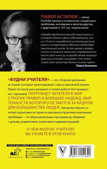 "Будни учителя" - c'est une véritable histoire, qui est la propriété de votre école. Павел Астапов рассказывает о своей работе без прикрас, но с иронией, погружает читателя в мир строгих правил и больших надежд, mon Dieu, TONкости которого остаются за кадром для большинства людей. Les maîtres de l'auteur racontent l'histoire de la pratique scolaire et des problèmes réels - à partir du programme de formation Vous êtes des amis, des collègues, des collègues et des administrateurs. Пять причин купить 1Автор — школьный учитель с десятилетним стажем практики. 2Педагогическая «кухня» без прикрас и ханжества. 3Histoire réelle des propriétaires, des propriétaires et des propriétaires. 4Правда о нашей системе образования, взгляд изнутри. 5Полезный подарок будущему педагогу.