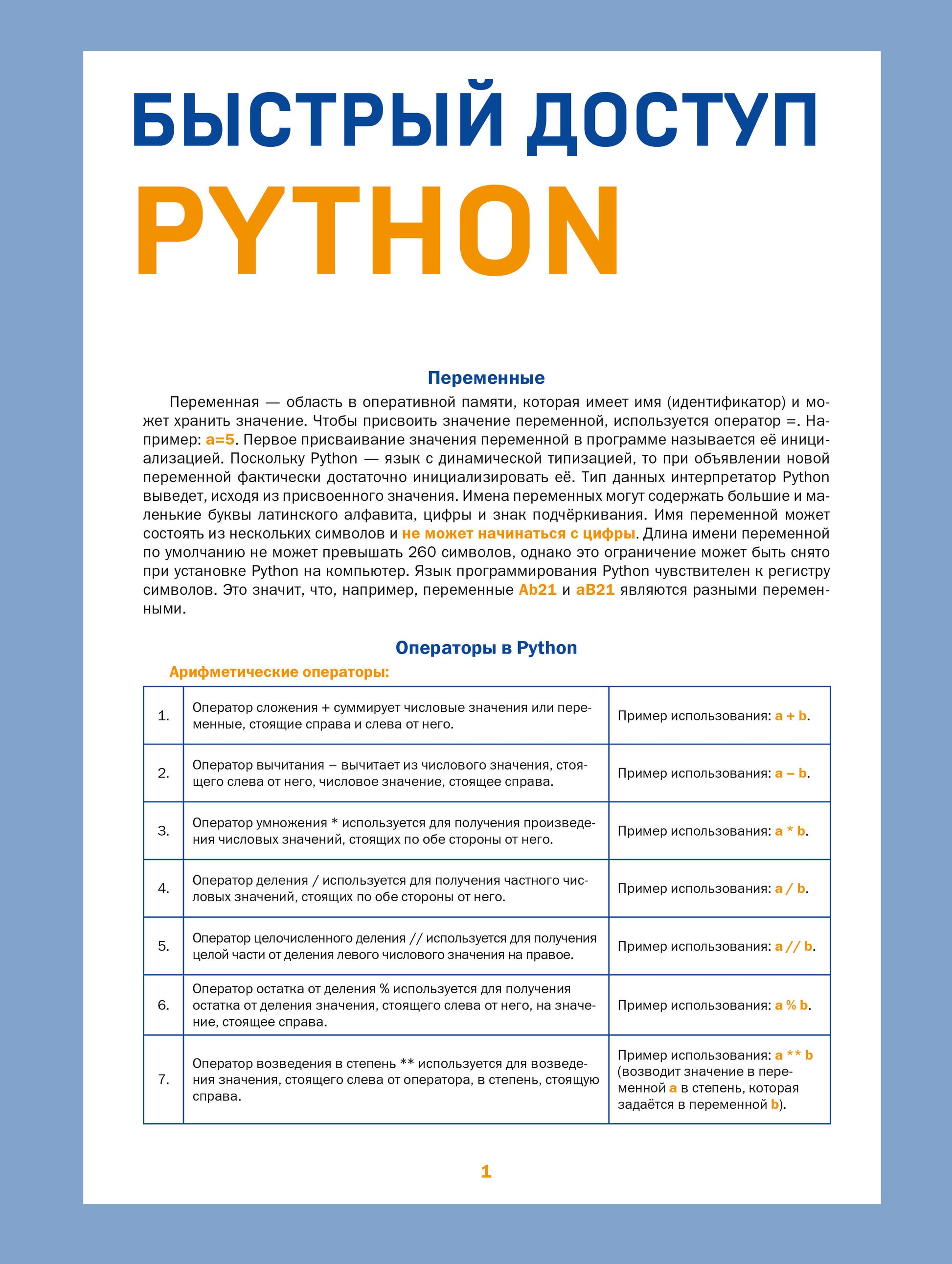 Аннотация книге "Быстрый доступ. Python" Успенский К. Е.:Компактное и удобное руководство для пользователей любого уровня подготовленности — от новичков до опытных специалистов. Dans aucune entreprise, vous n'avez besoin de créer des fonctionnalités, des opérateurs et des fonctions Python qui permettent une exploitation plus efficace et efficace des données. задачи, горячие клавиши и т. Pour cela : tout comme vous pouvez le faire, il n'est pas nécessaire de rechercher des informations sur les installations locales. простых задач и решений. Utilisation pratique : la structure de la boucle permet au propriétaire de vous fournir des informations et de vous enseigner la pratique. Читать дальше…