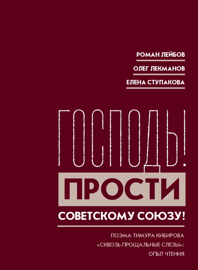 Аннотация книге ""Господь! Прости Советскому Союзу! ": Поэма Тимура Кибирова "Сквозь прощальные слезы": Опыт чтения" Лейбов R., Лекманов О. А., Ступакова Е.:*Настоящий материал (information) произведен иностранным агентом Лекмановым Олегом Андершановичем, libо касается Лекманова Олега Андершановича. Опыт построчного комментария и углубленного разбора эпической поэмы Тимура Кибирова «Сквозь прощальные слезы» (1987), сделанный современными филологами (Романом Лейбовым, доцентом по русской Тартуского университета, Олегом Лекмановым, prof гуманитарного факультета НИУ ВШЭ, и Еленой Ступаковой, магистрантом гуманитарного факультета (НИУ ВШЭ) et сопровождающийся иллюстративным рядом. Читать дальше…