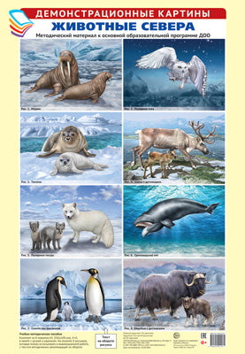 Carte de démonstration A3. Животные Севера. Matériel méthodologique pour le programme d'entretien professionnel DOS (8 cartes A3+, étiquette avec texte indiqué pour l'utilisateur)