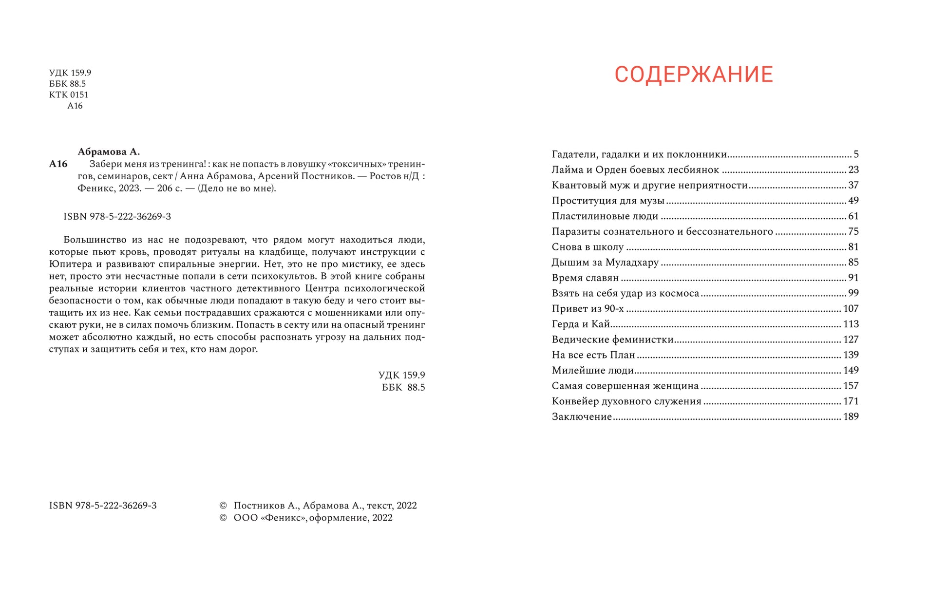 #ASTTD# Termes de recherche : Абрамова Анна; Постников Арсений Юрьевич , Abramova Anna; Postnikov Arsenii Urevich , Феникс , Feniks , Дело не во мне , Delo ne vo mne , 9785222362693 , 978-5-222-36269-3 , 1880596