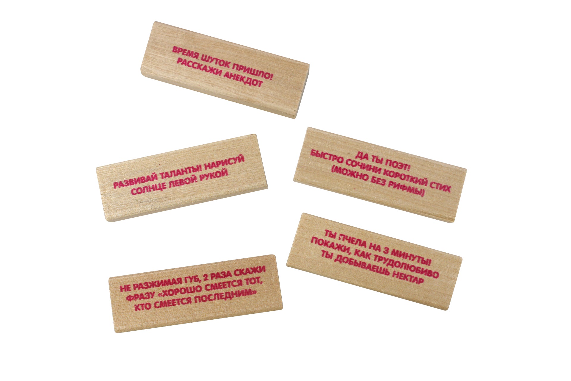 Настольная игра «Бам-Бум mini». Состав: деревянные брусочки – 54 pièces. (60 х 10 х 20 мм), уголок для сборки башни – 1 pièce. Matériel: дерево (береза). Recommandé pour un bébé de 5 ans. Развивает ловкость рук, смекалку, воображение, пространственное мышление.
