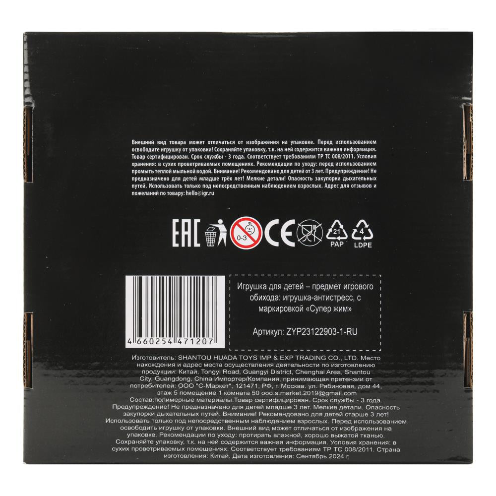 Le jeu "Игрушка-antistress супер-мялка огры, наполнение мука, дисплей Супер Жим уп-8шт в кор.8уп". Taux : 0,036.