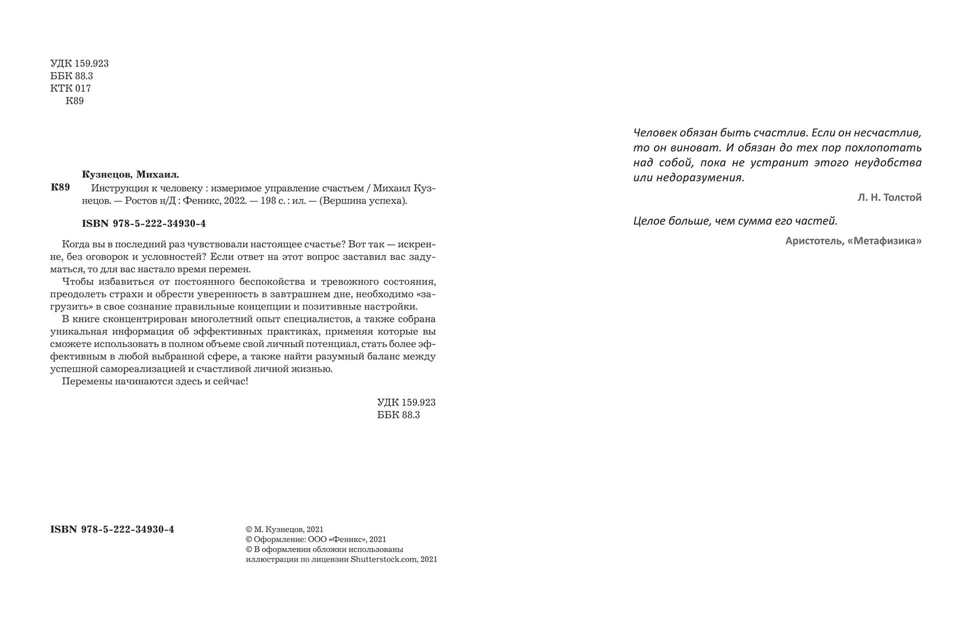 #ASTTD# Termes de recherche : Кузнецов Михаил С. , Kyznecov Mihail S. , ООО "Торговый Дом "Феникс" , OOO "Torgovii Dom "Feniks" , Вершина успеха , Vershina yspeha , 9785222349304 , 978-5-222-34930-4, 1755564