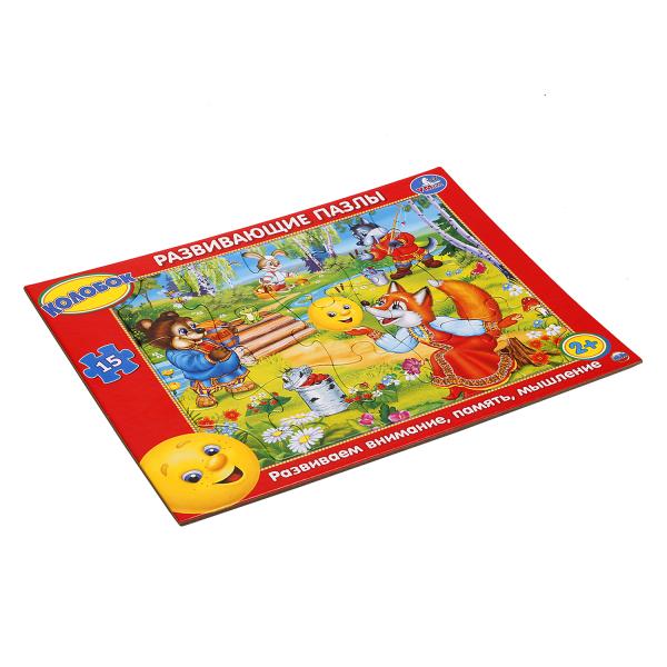 Handling time: 24 days РАЗВИВАЮЩИЕ ПАЗЛЫ В РАМКЕ "УМКА". КОЛОБОК. 15Д. 30*22*0,5СМ в кор.50шт Развивающий пазл в рамке "Колобок" состоит из 15 крупных деталей и подойдет самым маленьким деткам от 2 лет. Для того чтобы им было гораздо удобнее его собирать, имеется специальная рамка. На картинке изображены любимые герои отечественного мультфильма. Цвета пазла яркие и насыщенные. Все детали легко соединяются между собой и имеют сглаженные края, поэтому малыш не поранится. Пазл поможет развить внимание, память и образное мышление.