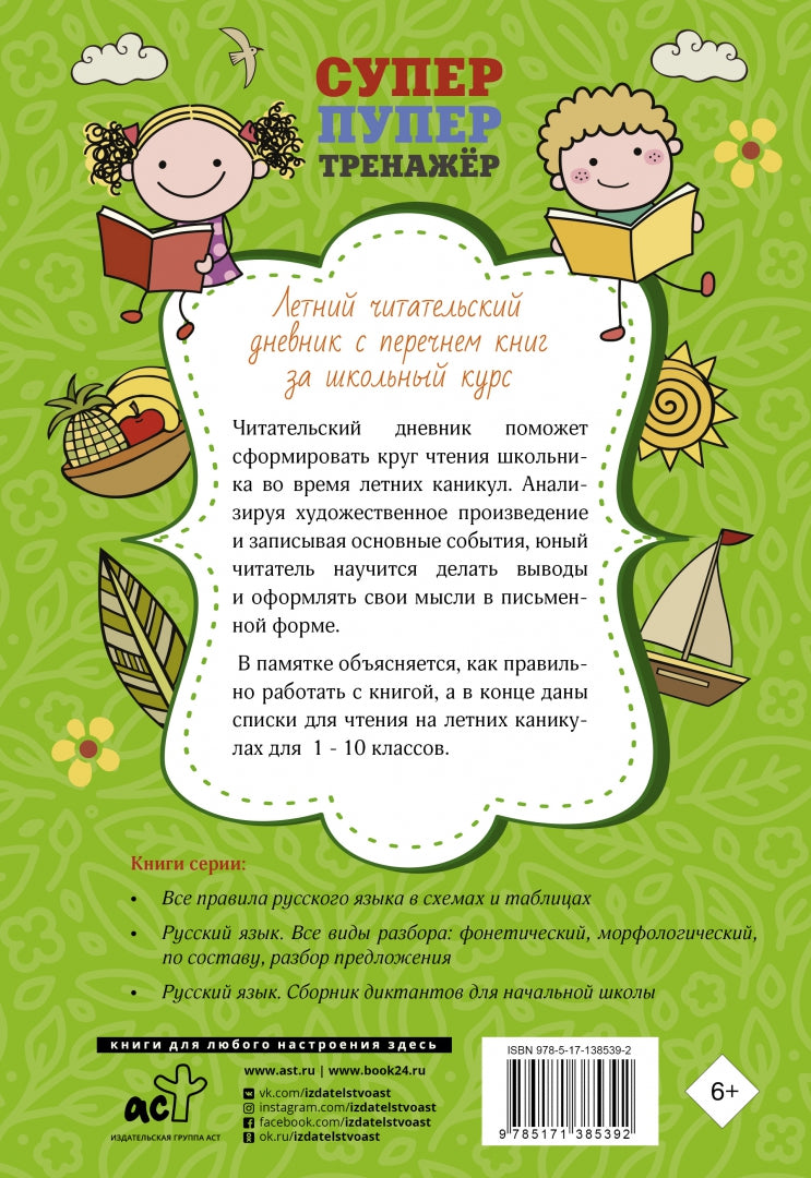 Летний читательский дневник с перечнем книг за школьный курс
