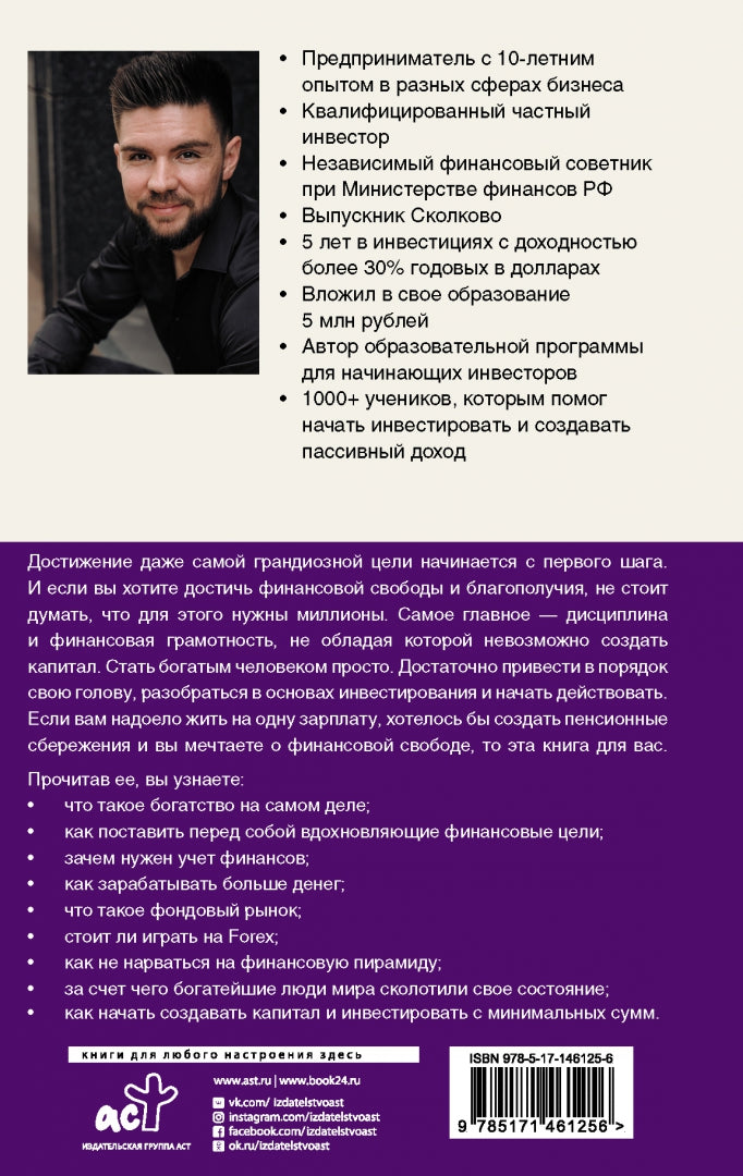 L'installation est très grande et s'effectue à l'heure actuelle. Si vous avez l'intention de créer des entreprises financières et des entreprises commerciales, vous ne devriez pas penser que cela représente des millions. Il est vrai qu'il n'est pas nécessaire d'investir dans le capital. Стать богатым человеком просто. Les propriétaires de votre entreprise doivent travailler sur leur investissement personnel et effectuer leur projet.• Prévoir 10 jours Opportunité dans les domaines de l'entreprise • Qualification des investisseurs institutionnels • Besoin d'une société financière auprès du ministère des Finances РФ• Выпускник Сколково• 5 лет в инвестициях с доходностью более 30% годовых в долларах• Вложил в свое образование 5 млн рублей• Auteur Programmes élaborés pour les investisseurs professionnels • Plus de 1000 investisseurs, qui permettent d'investir et de financer des projets passifs Si vous êtes à la recherche d'un hôtel à votre place, vous serez en mesure de prendre soin de votre pension et de vous aider à trouver un emploi financier. книга для вас.Прочитав ее, вы узнаете:• что такое богатство на самом деле;• как поставить перед собой вдохновляющие финансовые цели;• зачем нужен учет финансов;• как зарабатывать больше денег;• что такое фондовый FXок;• стоит ли играть на Forex;• как не нарваться на финансовую пирамиду;• за счет чего богатейшие люди мира сколотили свое состояние;• как начать создавать инвестировать с minimaльных сумм.
