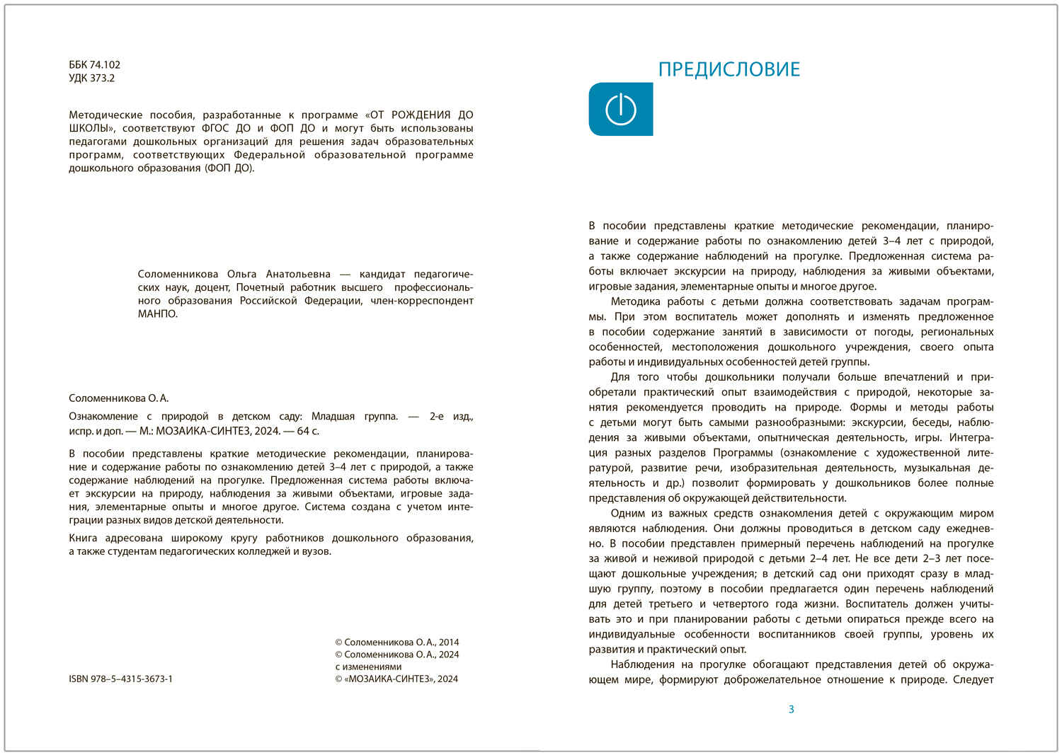 Ознакомление с природой в детском саду. Le groupe principal. 3-4 années. ФГОС. L'OFSP propose des recommandations techniques, une planification et une gestion des travaux pour les enfants de 3 à 4 ans. Par conséquent, il est nécessaire d'assurer la sécurité du programme. Les systèmes de travail préliminaires incluent des expéditions à l'avance, la planification des objets, des jeux, des opérations élémentaires je многое другое. Le système est doté de toutes les intégrations vidéo nécessaires. Le livre adressé à l'école de travail des robots de l'école, pour les étudiants...