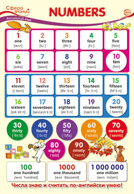 ПО-13435 Plaque A3. Английский язык в начальной школе. Nombres (Числа)