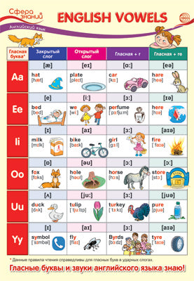 ПО-13585 Plaque A3. Английский язык в начальной школе. Voyelles anglaises (Английские гласные)