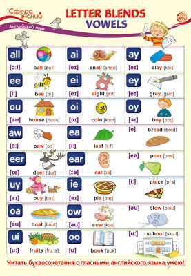 ПО-13587 Plaque A3. Английский язык в начальной школе.Mélanges de lettres : voyelles (Буквосочетания Гласные)