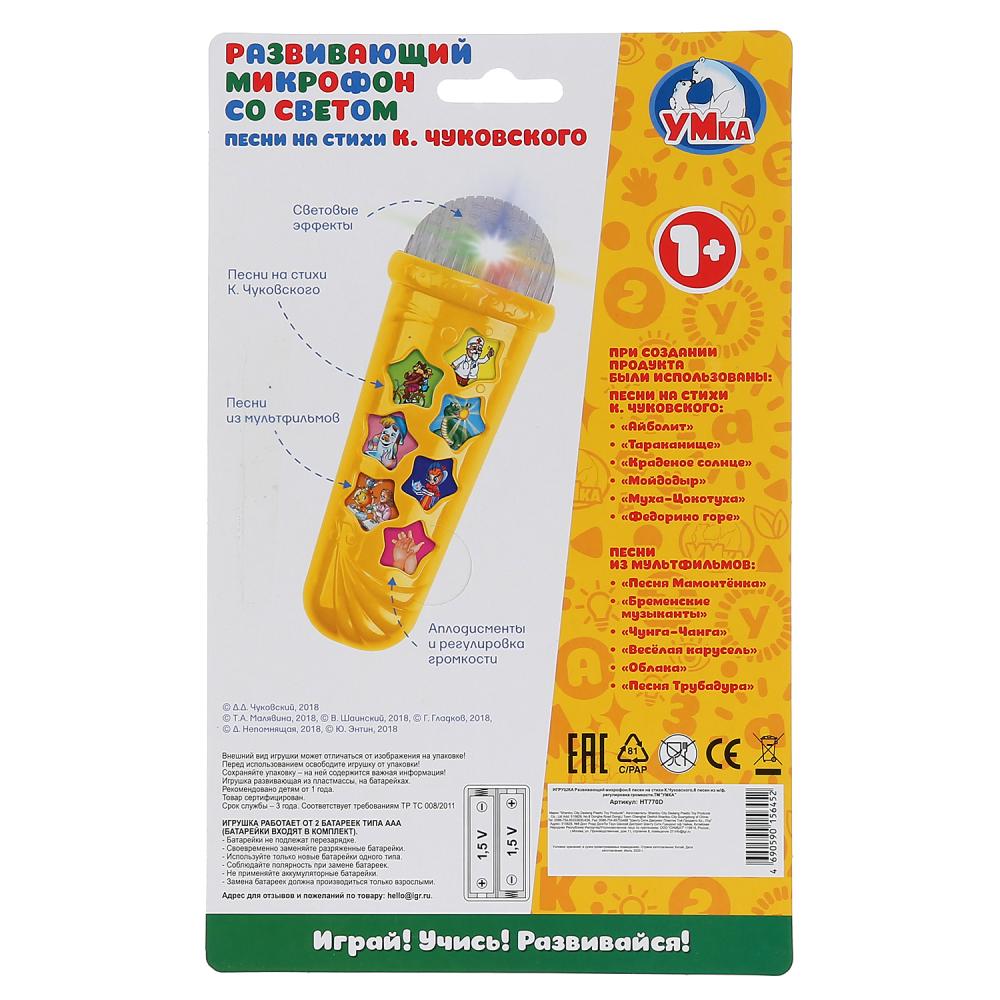 Развивающий микрофон.6 песен на стихи К.Чуковского,6 песен из м/ф, на бат. свет.ТМ"УМКА" в кор.60шт