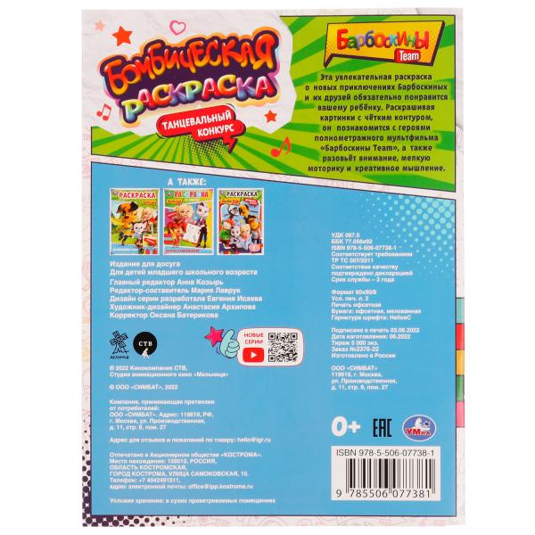 Книга "Танцевальный конкурс. Барбоскины. Раскраская Бомбическая. 214х290мм. 16 стр. Умка в кор.50шт". Iздательство: Умка. Point de passage : 16.