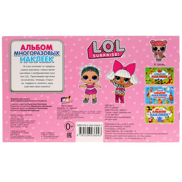 "УМКА". ЛОЛ (АЛЬБОМ МНОГОРАЗОВЫХ НАКЛЕЕК МАЛЫЙ ФОРМАТ). ФОРМАТ: 260Х155ММ. 4 CT. НАКЛЕЕК в кор.50шт