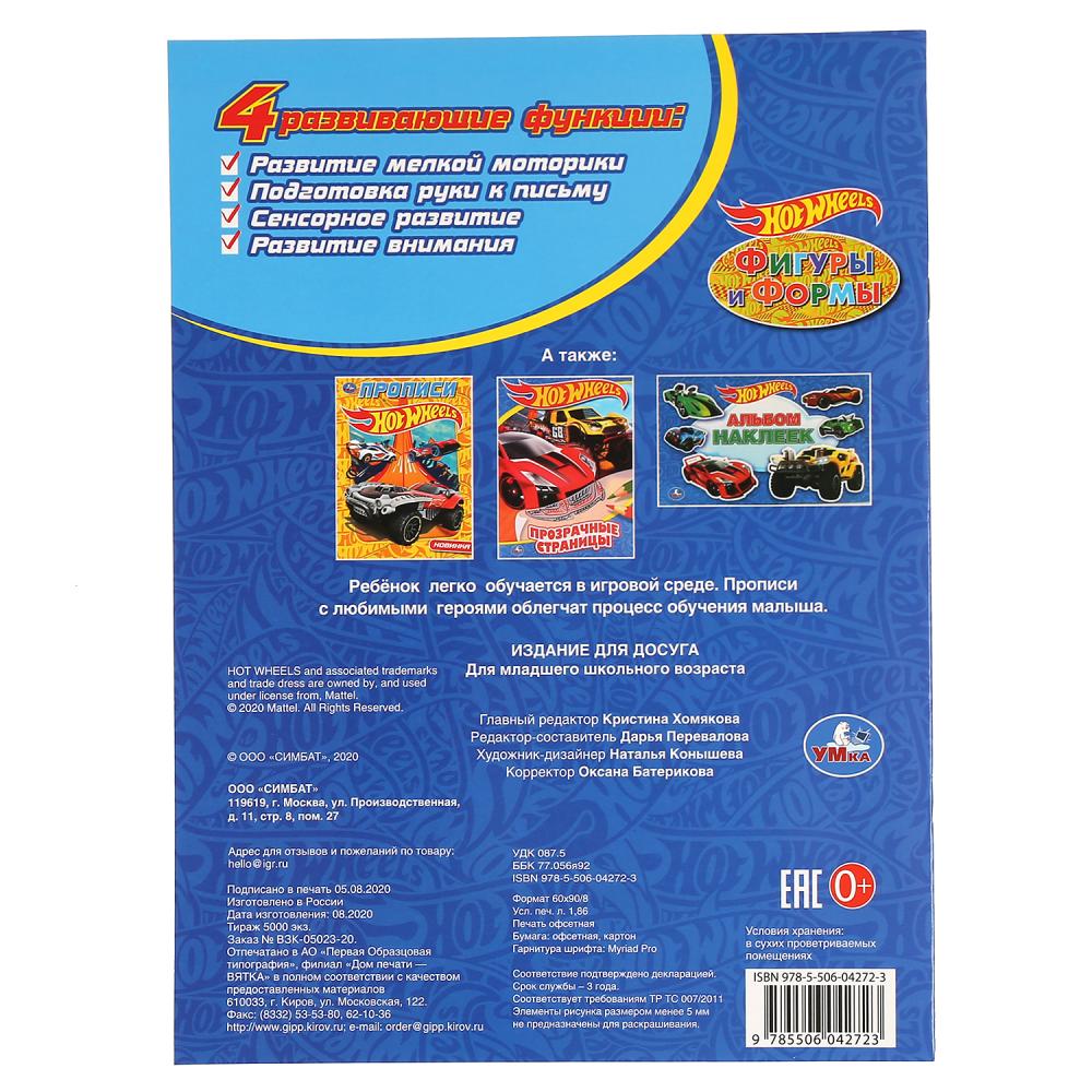 Раскраска с прописями «Hot Wheels. Фигуры и формы» ТМ «УМка» - отличный развивающий подарок для маленького любознайки: