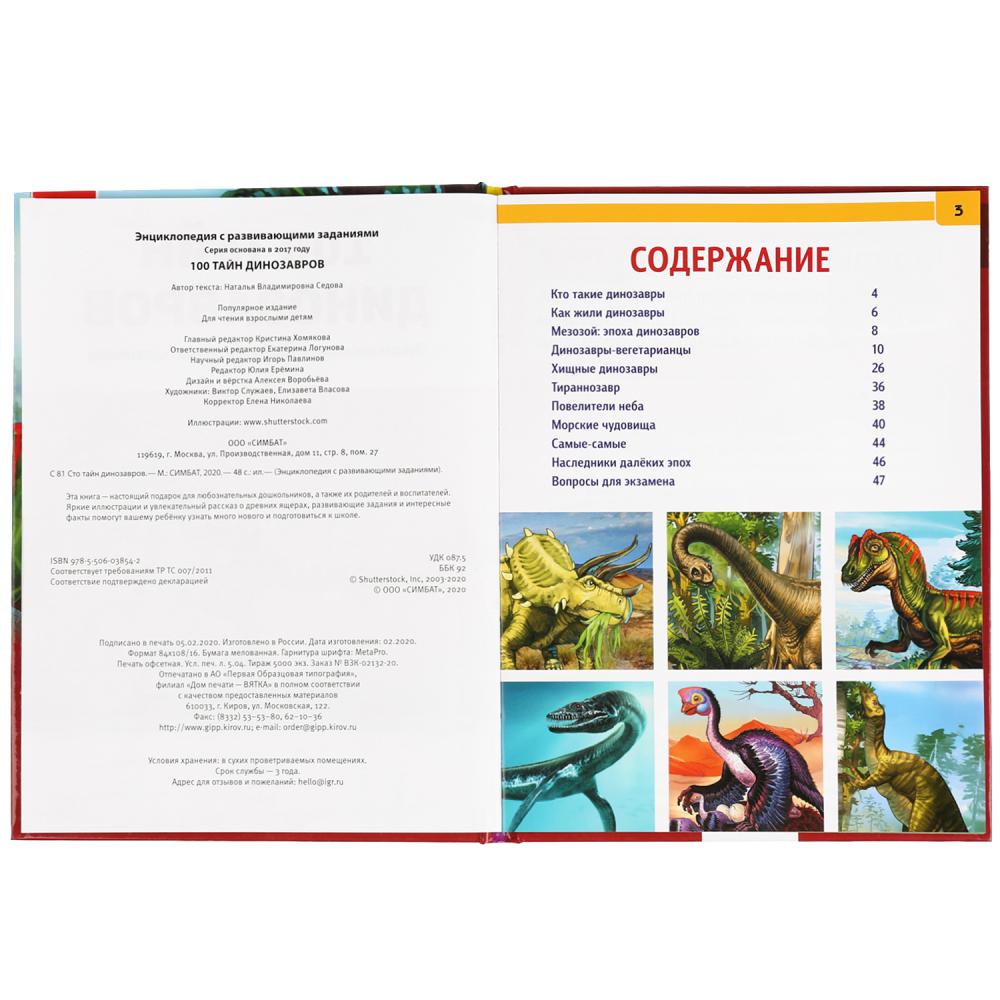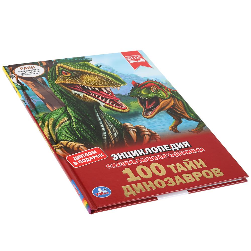 "УМКА". 100 ТАЙН ДИНОЗАВРОВ (ЭНЦИКЛОПЕДИЯ А4 С РАЗВИВАЮЩИМИ ЗАДАНИЯМИ). ТВЕРДЫЙ ПЕРЕПЛЕТ в кор.15шт