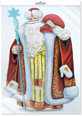 *ФМ1-15246 ППАКАТ ВЫРУБНОЙ А4 В ПАКЕТЕ. Дед Мороз (двухсторонний, в индивидуальной упаковке, с европодвесом и клеевым клапаном)