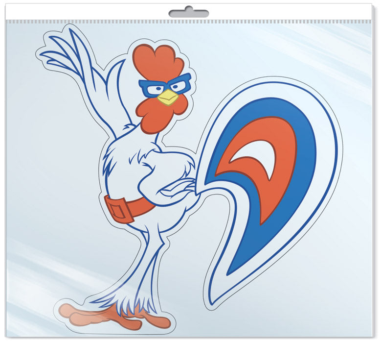 *ФМ2-12436 ПЛАКАТ ВЫРУБНОЙ А4 В ПАКЕТЕ. Петух из мультфильма Бременские музыканты (блестки в LAC, в индивидуальной упаковке, с европодвесом и клеевым клапаном)