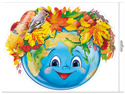 *Ф-15324 ПЛАКАТ ВЫРУБНОЙ А3 В ПАКЕТЕ. Глобус осенний (двухсторонний, в индивидуальной упаковке, с европодвесом и клеевым клапаном) - группа Времена года