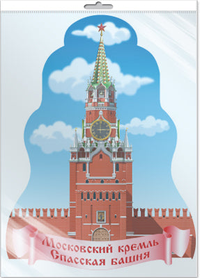*Ф-15497 ПЛАКАТ ВЫРУБНОЙ А3 В ПАКЕТЕ. Спасская башня Кремля (double, в индивидуальной упаковке, севроподвесом и клеевым клапаном) - группа Россия