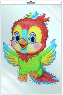 *Ф-8066-П ПЛАКАТ ВЫРУБНОЙ А3 В ПАКЕТЕ. Попугай (с блестками и уф-laком в индивидивидуальной упаковке с европодвесом и клеевым клапаном)